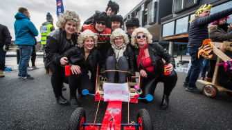Før selve kjøringen er det teamfoto av hvert enkelt lag med sin olabil.